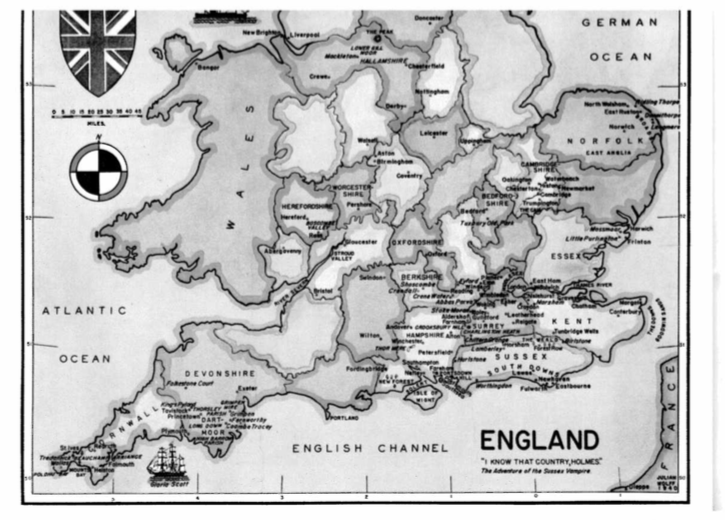 Figure 3 Wolff’s Sherlockian Map of England, from his 1952 Sherlockian Atlas. Only 100 copies of this pamphlet were made.