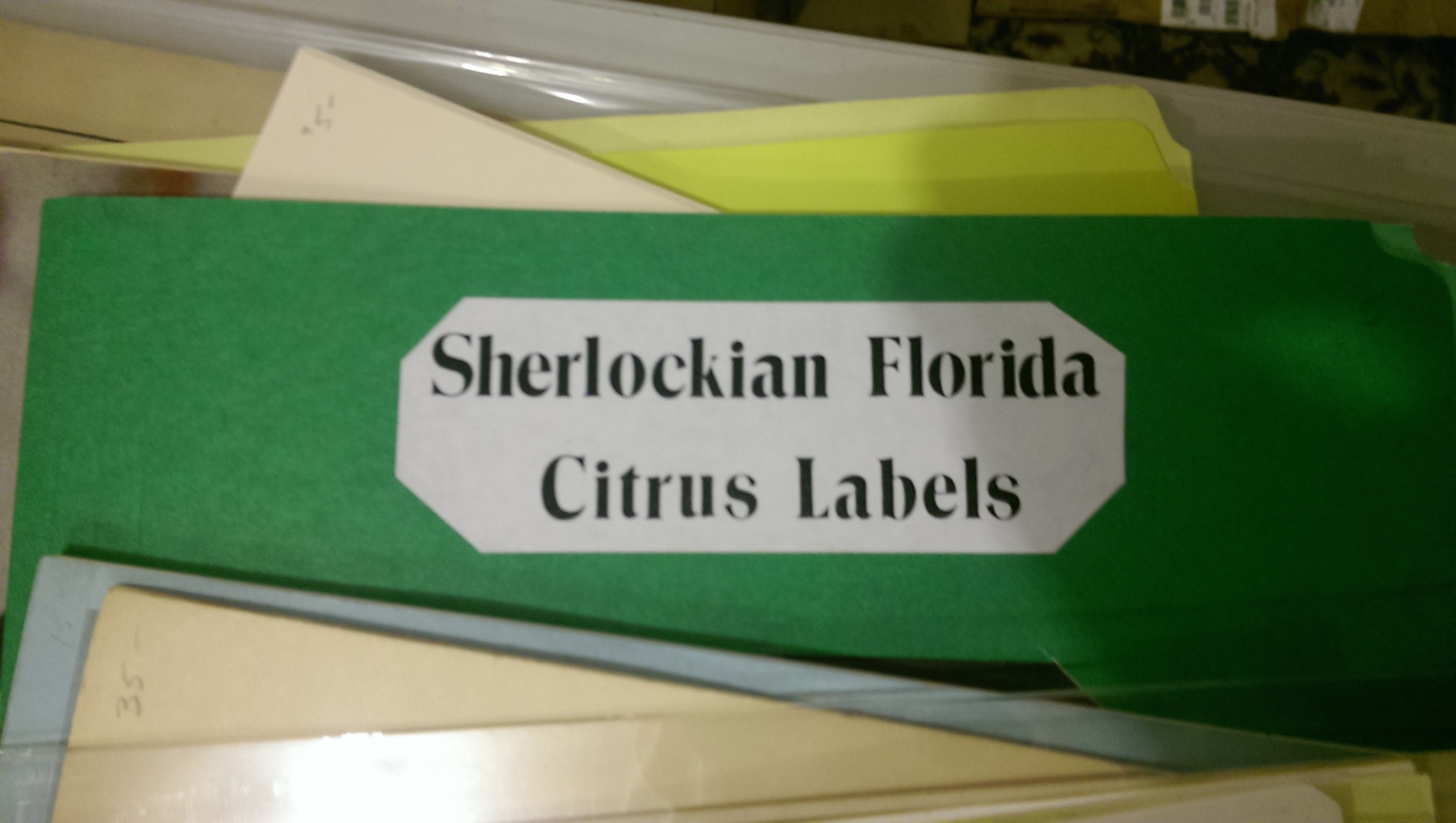 Rooting around the piles of material on one of the tables I found a pamphlet memorably titled, You Bastard Moriarty (fig.1) and a manila folder labelled, without comment, ‘Sherlockian Florida Citrus Labels’ (fig.2). Rather than delve any deeper into these mysteries (sadly we will never know why Sherlockian-specific fruit labels exist), I turned instead to a find what would prove to be very interesting indeed to the student of Sherlock Holmes and literary geography. Sitting in an unmarked envelope, priced inauspiciously at $1, was an artefact that has led me down a research path, fruitful in its own way. [Complaints about puns can be addressed to the author – Ed.]